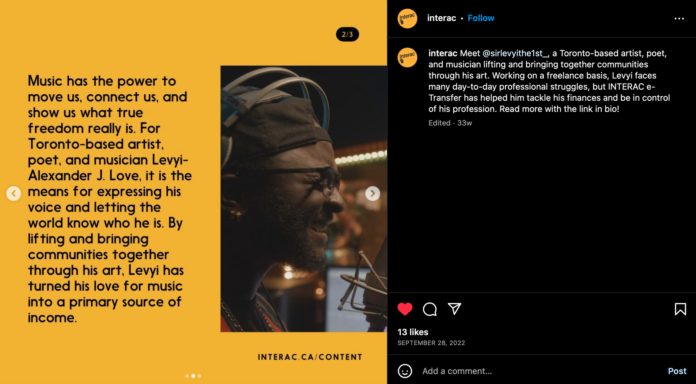 Interac collaborated with local artists to address conversations about money on their social channels to help people be more in control of their finances.